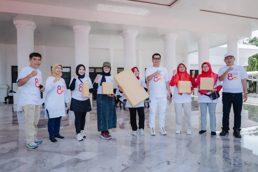 SERANG- Dalam rangka memperingati HUT PMI ke-80 Tingkat Kabupaten Serang, Ketua DPRD Provinsi Banten sekaligus Ketua PMI Kab. Serang, Fahmi Hakim, laksanakan senam bersama bertempat di Lapangan Gubernur Banten, KP3B, Sabtu (13/09/25).